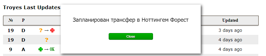 Пред матчевые пресс-конференции тренеров. Наша команда следит за каждой пресс-конференцией, вся информация, которая касается состава команды на матч моментально отображается в превью к матчу в виде травмы игрока (красный крестик), вопросительного знака (тренер не уверен, что игрок готов на 100% к матчу), или например, игрок вернулся к полноценным тренировкам (зеленый крестик), игрок будет отсутствовать по семейным причинам (красный самолетик) и.т.д.;